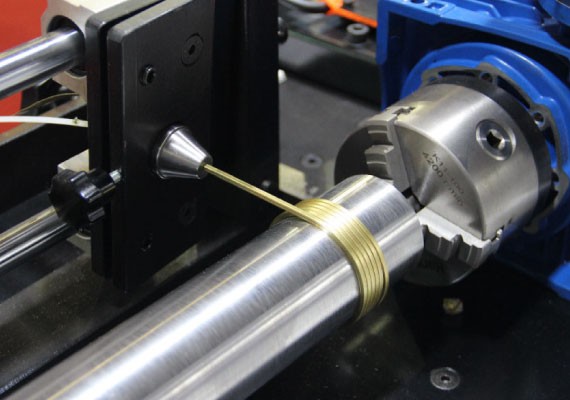 Desktop Channel Coiling Machine is designed for producing bracelet, ring and earring. Its difference from Standard Channel Coiling Machine is its size. Its desktop size gives you more space to work. With speed control, it provides sensitive working and with high speed it provides mass production of products. Three meters drawing unit can be removed to gain more working space when there is no use for it. Depending on used shapes and dimensions of mandrels and dies it can produce the products with 0,10mm to 0.40mm strap thickness and between 4mm – 60mm products